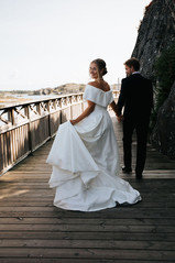 After a beautiful ceremony (and quite a few happy tears!), we took the boat over to Knarrholmen. It felt as if time stood still for a while – the sea, the nature, and the light created a magical setting for the evening. We took portraits among the rocks and pine trees, with the sunset as our backdrop. The images turned out both heartfelt and dreamlike – a perfect reflection of the two of them.